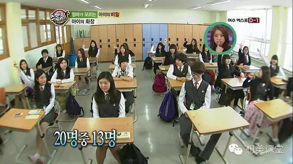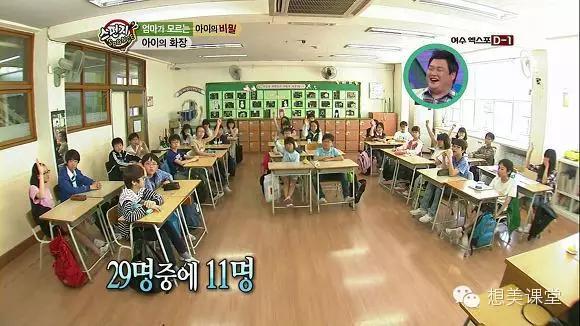 韓國(guó)的一個(gè)節(jié)目中就調(diào)查了一個(gè)小學(xué)班級(jí)里的29名學(xué)生,其中化妝的有11名。
