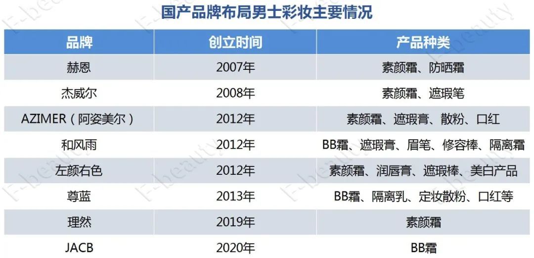 除此之外,國內(nèi)入局男士彩妝的品牌也不少。其中,男士護(hù)膚品牌赫恩創(chuàng)立于2007年,目前旗下產(chǎn)品覆蓋護(hù)膚、彩妝、洗護(hù)等領(lǐng)域。除了一些老牌化妝品品牌外,近幾年面市,并推出彩妝產(chǎn)品的新銳男士品牌理然和JACB分別已完成3億元B+輪融資和千萬元天使輪融資。