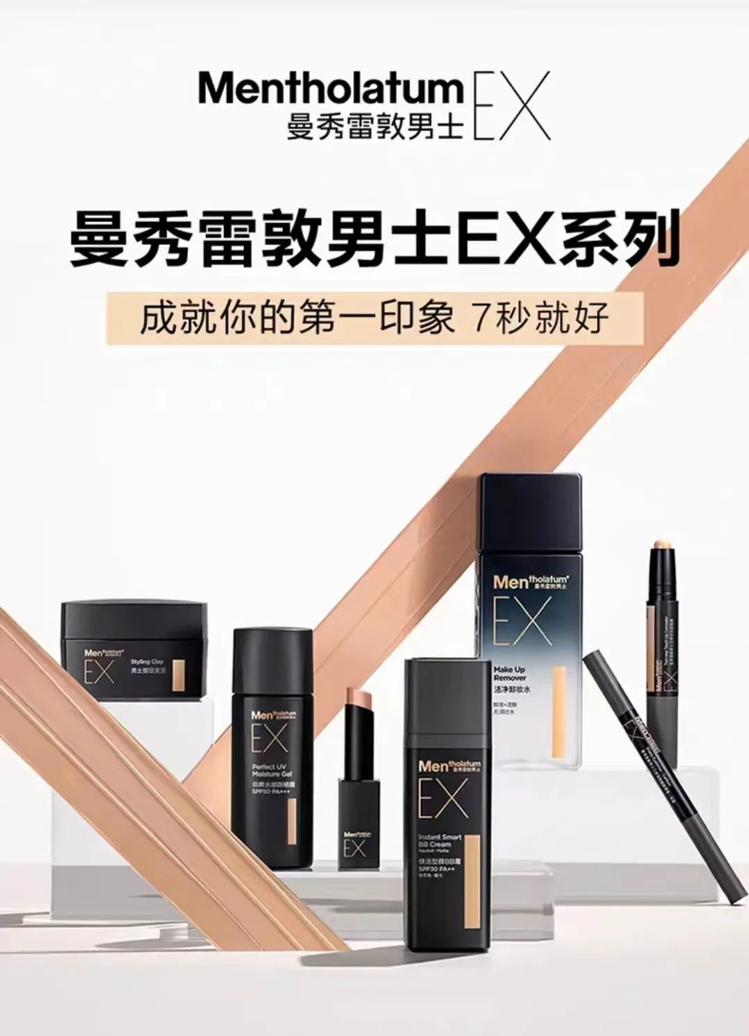 近日,曼秀雷敦推出全新理容彩妝系列——EX系列。包含7款單品,從防曬露、素顏霜、遮瑕棒,到眉筆、卸妝水、發(fā)泥,涵蓋了男士理容彩妝的全流程。