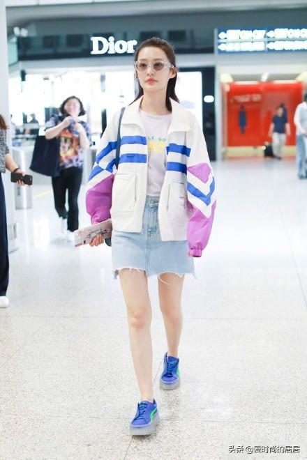 現(xiàn)在“女團妝”“女團風”特別火,程瀟的這身穿搭就是典型的代表之一?!芭畧F風”的典型穿搭除了百褶裙、露臍裝之外,大概就是這樣充滿青春活力的穿搭了。程瀟上身穿搭白色吊帶,下身搭配不規(guī)則淺藍色牛仔裙,外面搭配白色防曬衫,活力四射~這樣的穿搭不僅僅適用在舞臺上,在日常生活中也數(shù)組清涼又時尚的款式。