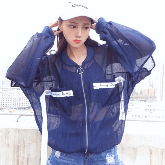 ▲彩色韓版時(shí)尚防曬衫