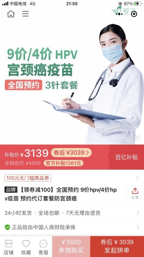 才畢業(yè)當(dāng)上幼師的劉爽,則給自己送了一份520大禮——HPV疫苗?!伴L(zhǎng)沙公立醫(yī)院的疫苗很難約,我朋友等了一年也沒(méi)排上?!眲⑺f(shuō),自己平時(shí)喜歡在拼多多百億補(bǔ)貼買平價(jià)彩妝和護(hù)膚品,一搜發(fā)現(xiàn)竟然還有HPV疫苗,“而且價(jià)格很劃算,3000出頭,還是現(xiàn)貨”。