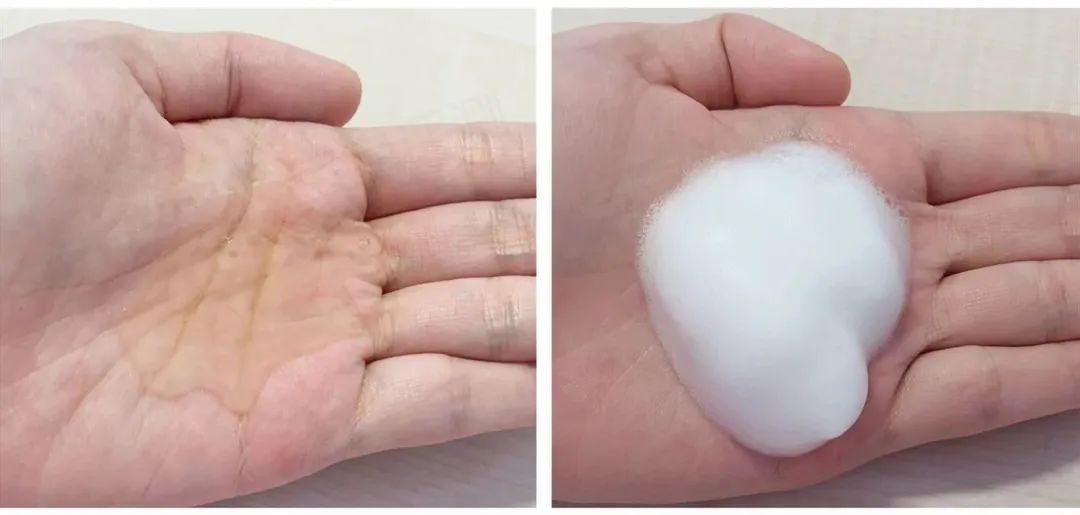 泡沫型擠出來是一團綿密的白色泡沫,無需用手搓泡,直接涂抹即可,比較容易涂抹均勻,相對而言,寶媽更省事,也更適合寶寶自己動手。不過泡沫型的質(zhì)地比較稀,每次要多按幾泵,一般比啫喱型用得更快些。