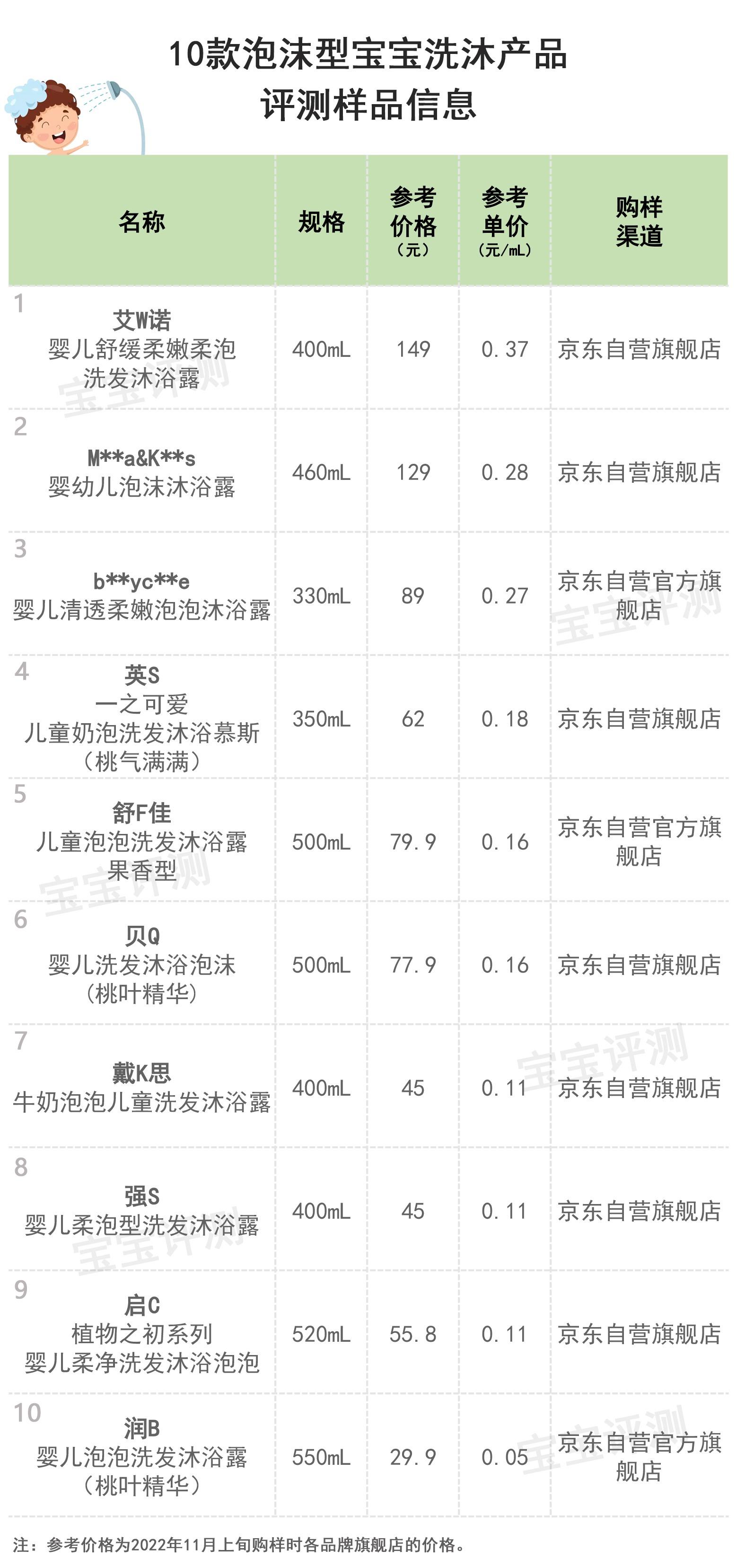 評測樣品&評測指標綜合電商平臺銷量、品牌知名度及關(guān)注度,笨爸爸選擇了以下10款泡沫型寶寶洗沐產(chǎn)品進行評測: