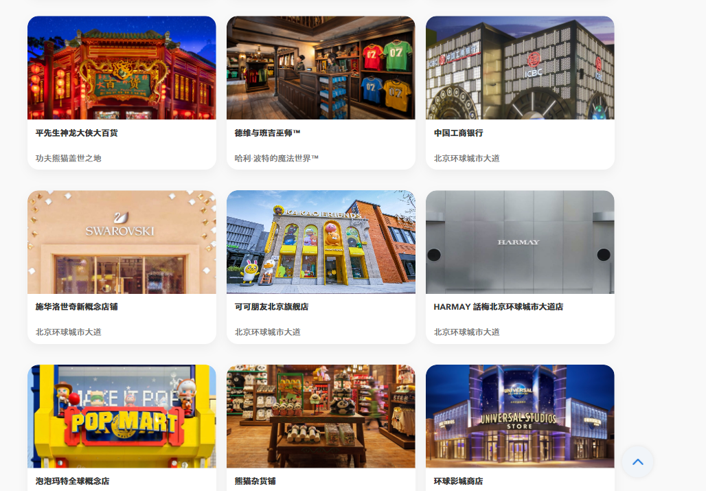點(diǎn)開北京環(huán)球影城官方網(wǎng)站的商店菜單,一眾IP主題概念商店中的兩個(gè)新消費(fèi)品牌顯得格外突出——潮玩品牌泡泡瑪特和美妝集合店HARMAY話梅。雖然在網(wǎng)站上被置于倒數(shù)兩排的靠后位置,但和施華洛世奇、可可朋友(kakao friends)等國際性品牌同列,也算是賺足了排面。