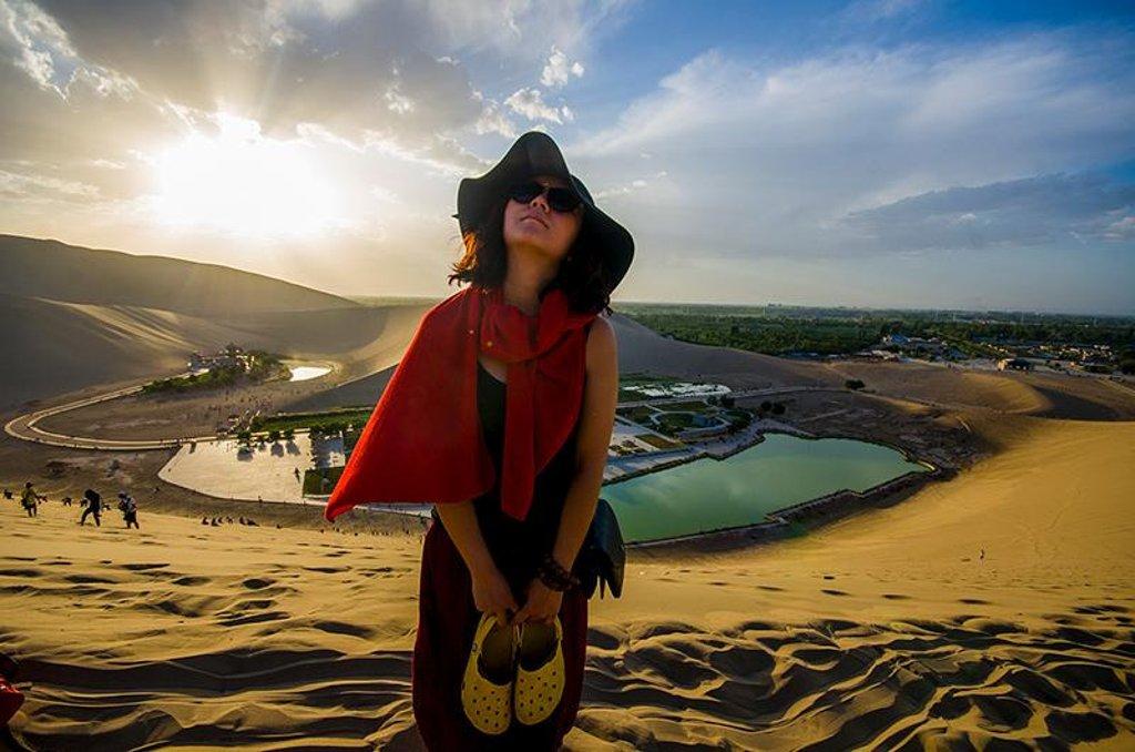 去到敦煌的鳴沙山風沙特別的大,而且又坐在駱駝上不敢亂動,因此一度的苦惱。但是這種情況是我們好運才會遇到的,像我們在沙坡頭就沒有什么風沙,但是建議大家還是備著好,不然真的很狼狽.