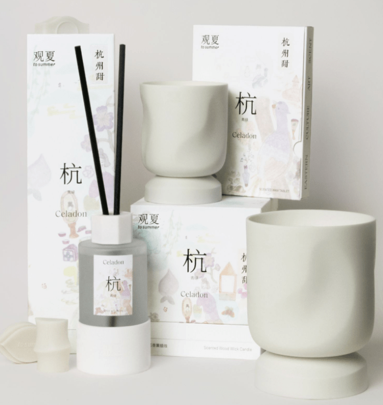 繼蘇州甜系列之后,觀夏新發(fā)上新了中國(guó)甜主題的第二個(gè)系列——杭州甜。本次杭州甜系列以「青綠」為名,產(chǎn)品包括陶瓷精油木芯、香薰蠟燭、陶瓷精油香插、精油造型香磚和定制火柴。