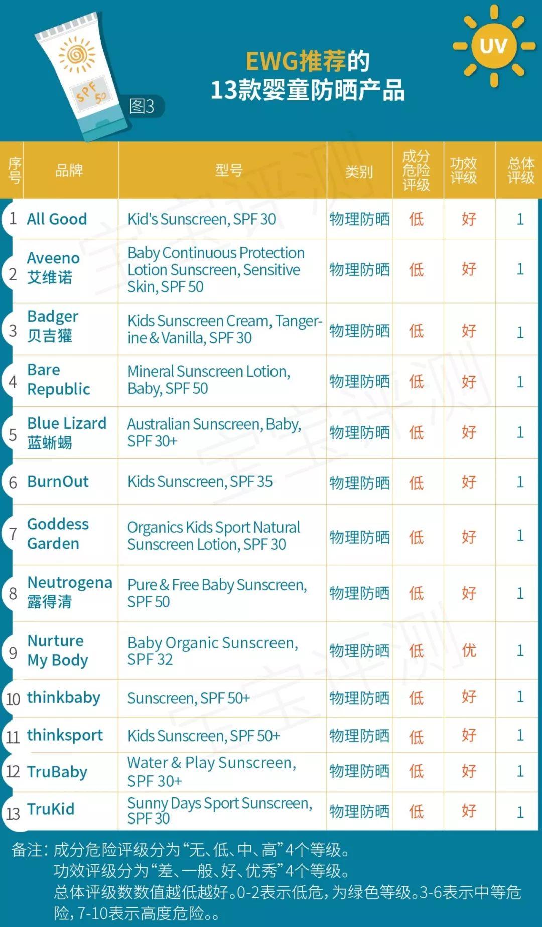 值得注意的是,EWG對ThinkbabySPF 50+ Lotion sunscreen和Neutrogena露得清Pure Free Baby Lotion SPF 50 sunscreen的綜合評級是好的“1級”。