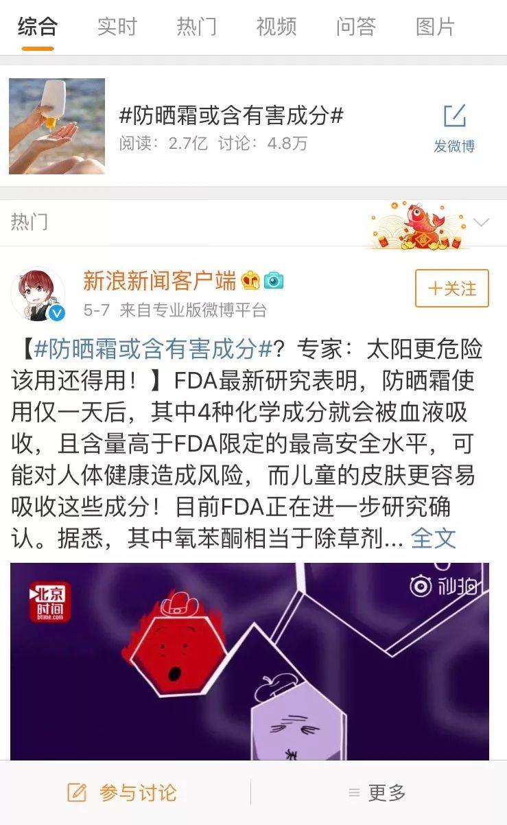 5月7日,國內(nèi)的各個新聞上出現(xiàn)了“防曬霜或含有害成分”的熱門話題,這讓不少人憂心忡忡,眼下正是入夏,防曬霜還能涂嘛?
