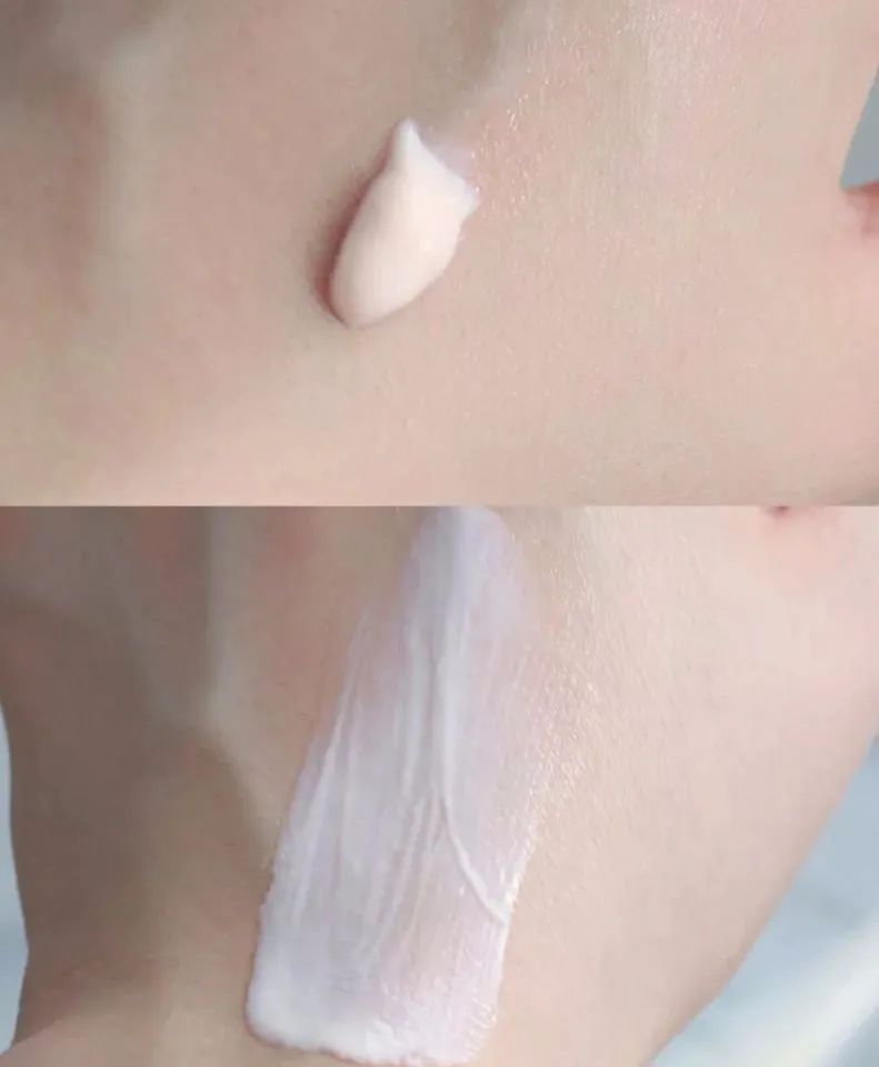 淺粉色乳霜膏體質(zhì)地,觸感柔潤(rùn),質(zhì)地介于面霜和乳液之間,延展性很好,滋潤(rùn)但是不油膩,成膜很快不假白,成膜后是輕微柔光。