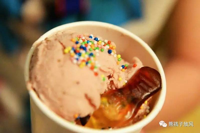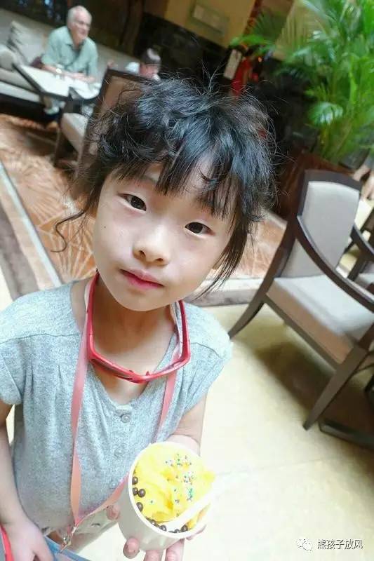 小朋友去拿了免費(fèi)冰激凌,她說(shuō)服務(wù)員用英語(yǔ)說(shuō)了 一串口味的,她只能聽(tīng)懂巧克力,所以就拿了巧克力味的