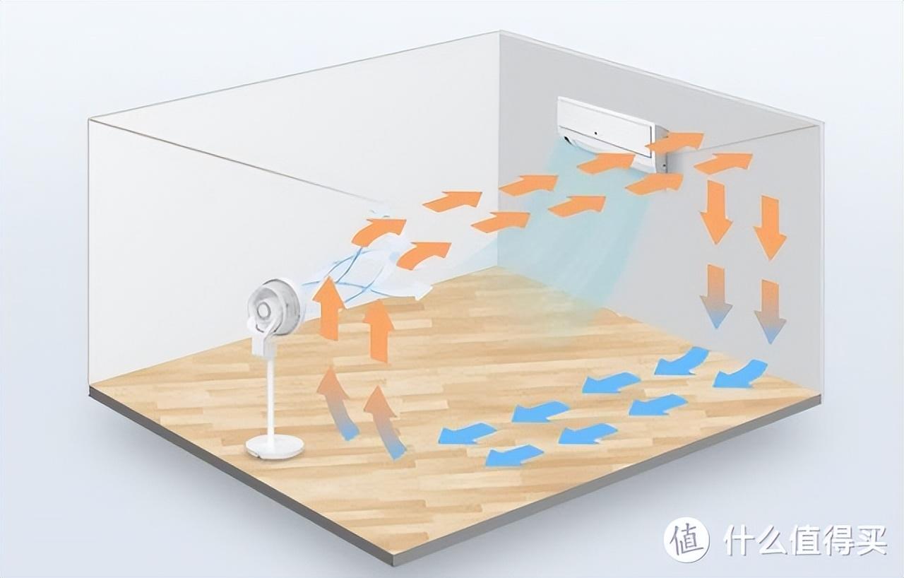 在跟空調(diào)搭配使用時,可以使下沉的冷空氣或者上浮的暖空氣加速流動起來,讓整個空間溫度更均衡。