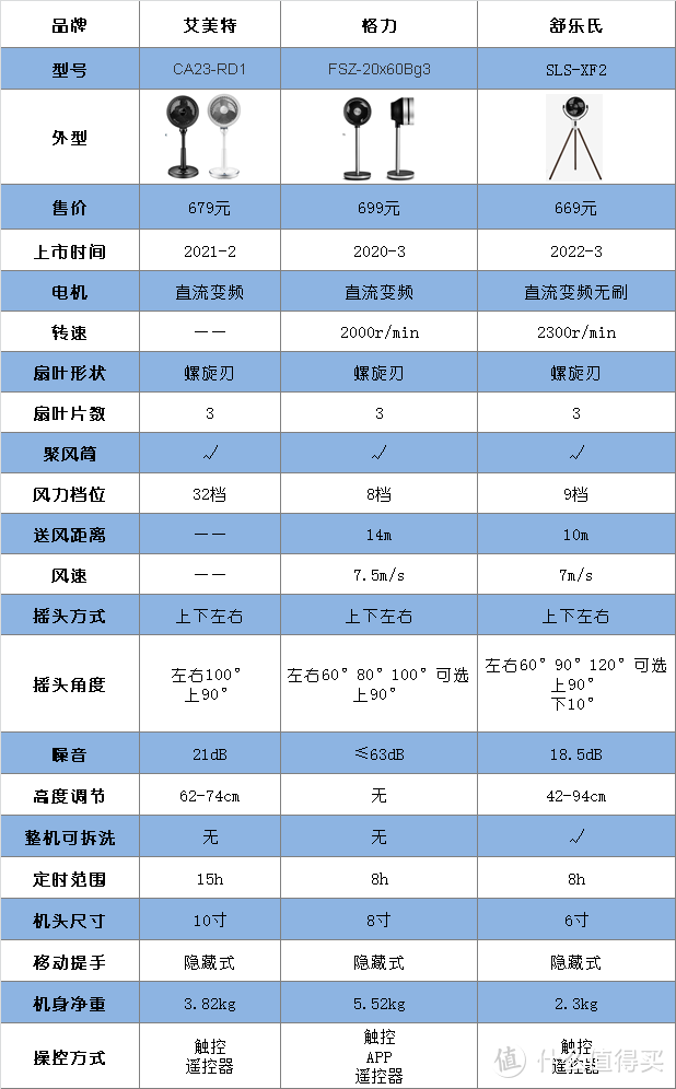 一杯跟朋友一打聽,原來不少人都已經(jīng)入手過循環(huán)扇。我挑選了艾美特CA23-RD1、格力FSZ-20x60Bg3、舒樂氏SLS-XF2這3臺來對比。
