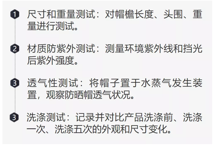 關(guān)于遮陽(yáng)帽的具體測(cè)評(píng)維度為: