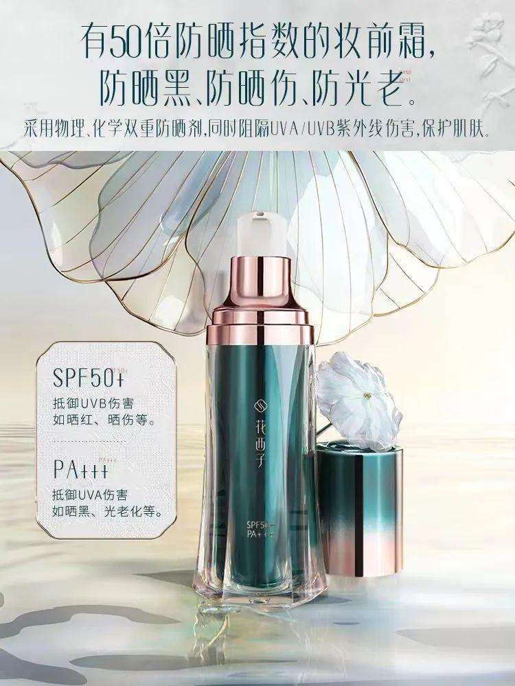 花西子的玉容云紗防曬妝前霜包括清爽上妝、20%保濕成分、UV防曬和提亮三合一等;蘭蔻小白管UV隔離防曬霜產(chǎn)品賣點有:清透、養(yǎng)膚、抗光老和植萃成分等。