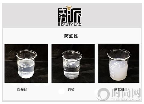 測評結(jié)果:分別將百雀羚防曬霜、丹姿美白防曬露、歐萊雅隔離露加入溶液中,觀察其變化。當(dāng)百雀羚遇到油性溶液后,出現(xiàn)少量的溶液,溶液變的稍微渾濁,說明遇油會花妝脫妝;丹姿美白防曬露遇到溶液后,呈現(xiàn)條狀,與溶液完全分離,而且溶液較清,說明丹姿美白防曬露遇到出油情況,也會雷打不動的服帖不花;至于歐萊雅隔離露的防油性不用多說,看圖便知。