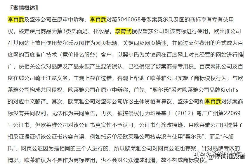 而在2014年,李育武和望莎集團(tuán)還曾起訴了歐萊雅集團(tuán),并索賠100萬元。