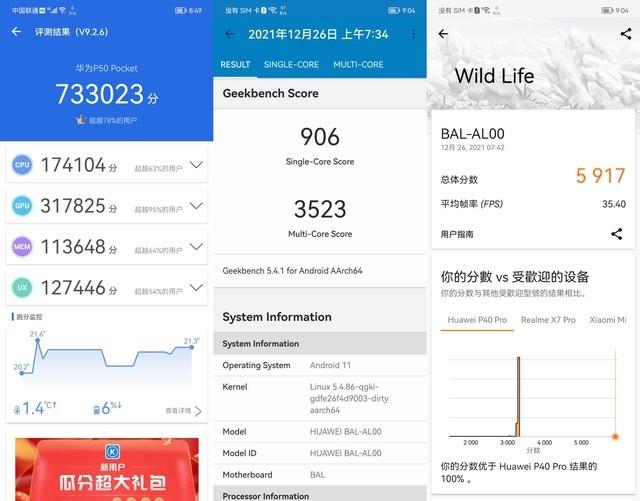后我們來聊聊性能,由于外界限制所帶來的供應(yīng)鏈問題也波及到了P50 Pocket,使其無緣麒麟9000,不過其搭載的驍龍888處理器也能提供旗艦級的性能表現(xiàn)。