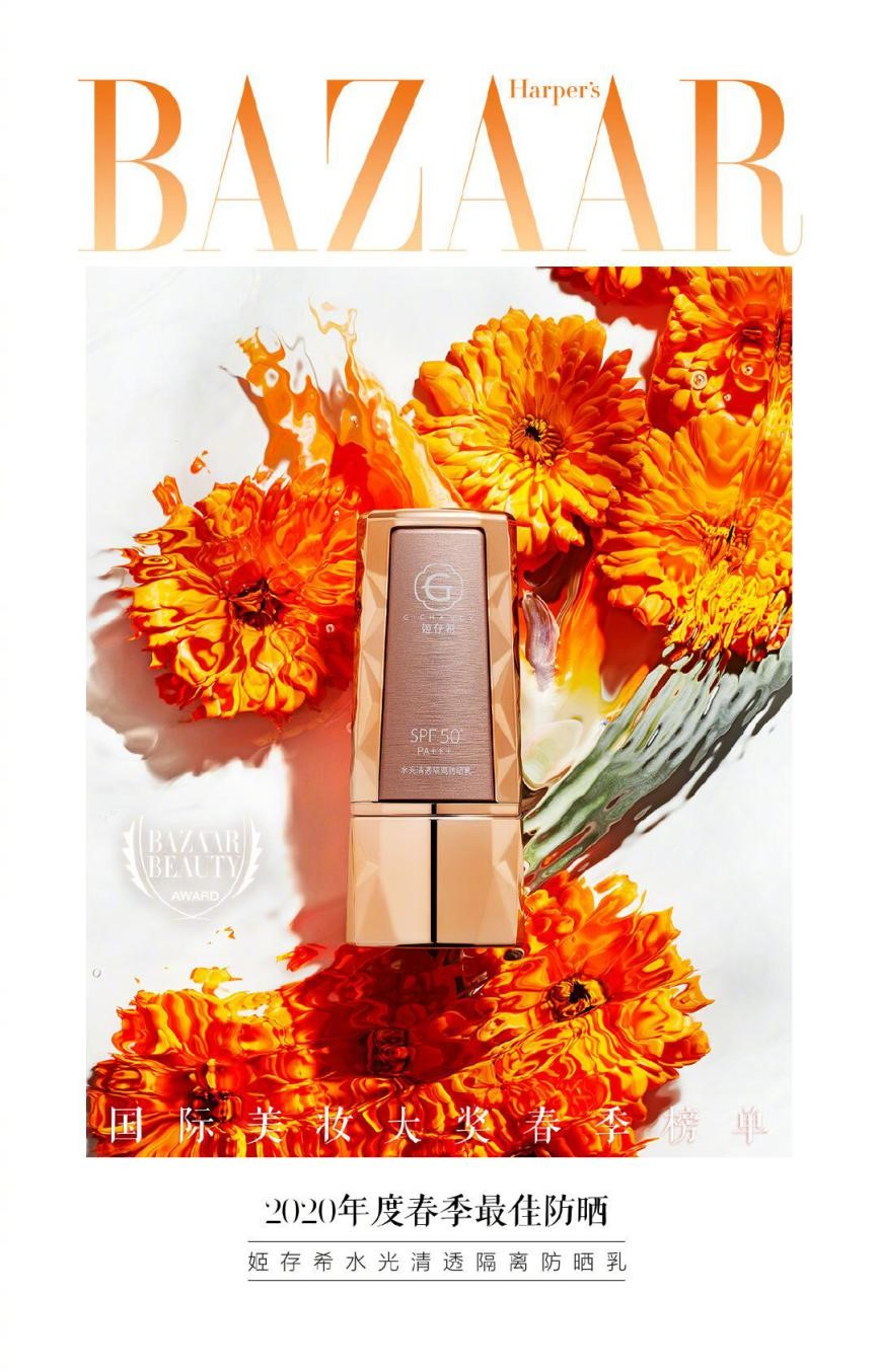姬存希小晶鉆防曬乳獲《時尚芭莎》評選“2020年度春季佳防曬”