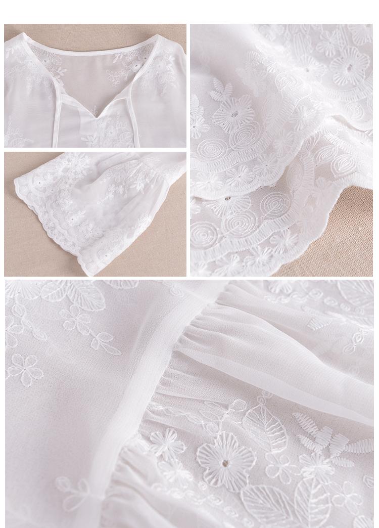 小V領(lǐng)系帶文藝氣質(zhì),精致的鉤花設計和喇叭袖結(jié)合,起到了很好的減齡果,內(nèi)贈親膚小吊帶,若隱若現(xiàn)的透視感又帶有一絲小性感,美麗的同時還能防曬,多好!