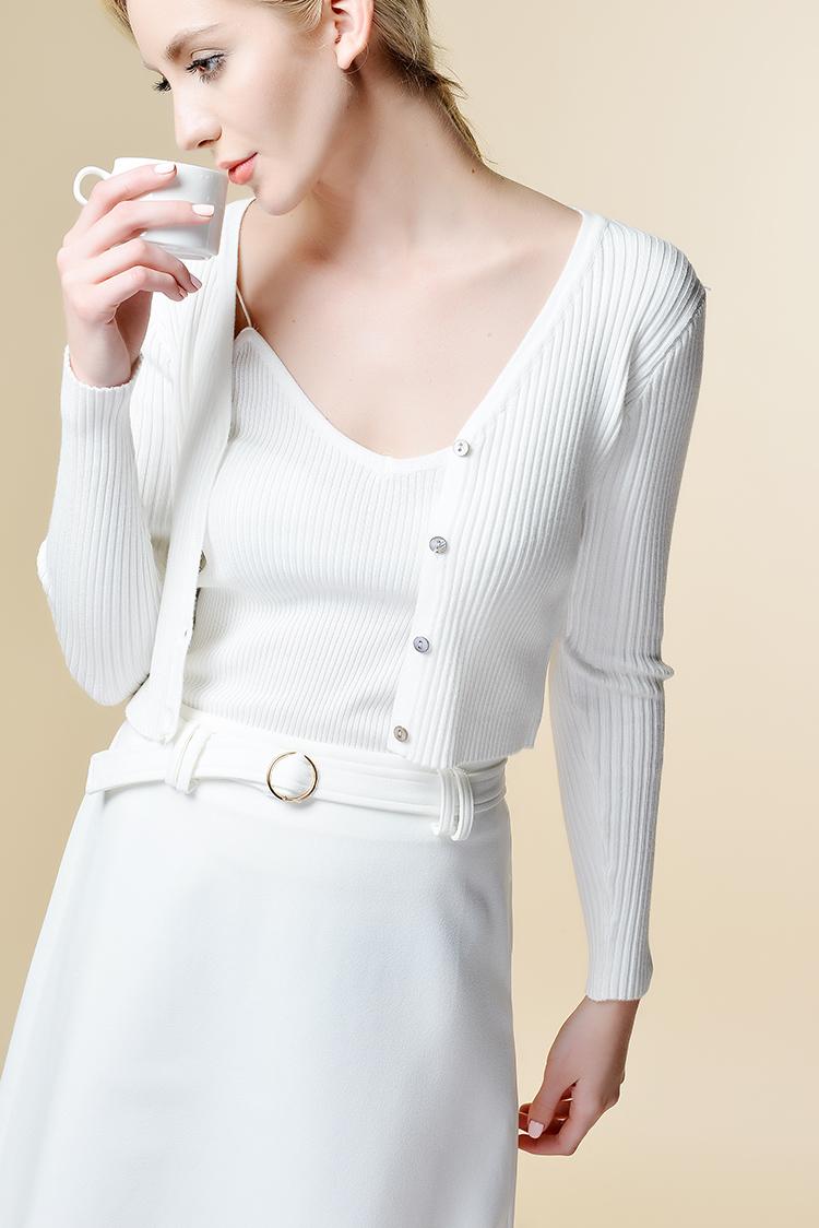 此款針織衫,小V領(lǐng)的款式,讓小臉看起來更加的精致,豎向螺紋坑條設計修飾身形,短款版型露出內(nèi)搭背心吊帶,完全不用擔心遮住你想要展現(xiàn)的美。多色可選,滿足你百變的需求,適宜防曬打底,早晚出門或空調(diào)房均可穿著。