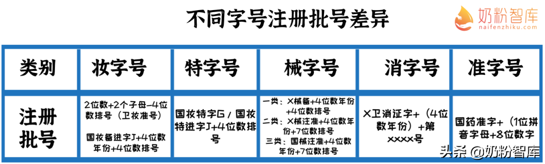 我們看到關于針對寶寶的不同用品,會頒布不同的“字號”,如“妝字號”、“特字號”、“械字號”、“消字號”、“準字號”。由于審批部門不同,所以審批的差異也會存在較大差異,下面我們具體從不同字號的品類、產(chǎn)品、適用人群、作用功、審批方式、批號/注冊格式為大家進行介紹~
