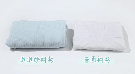 這種泡泡紗材質(zhì),穿在身上既不像冰絲那么涼,也不會像棉質(zhì)襯衫那么悶熱。