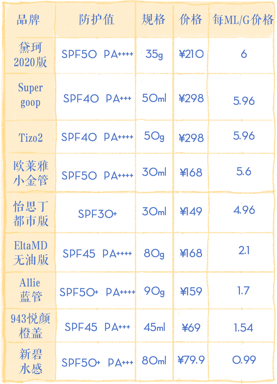 為了讓大家對(duì)各款防曬有個(gè)基本了解,看看各款防曬的出生條件吧。本來(lái)打算是按照價(jià)格由高至低排序的,但是我們不能光看價(jià)格,也得看規(guī)格呀是不是。