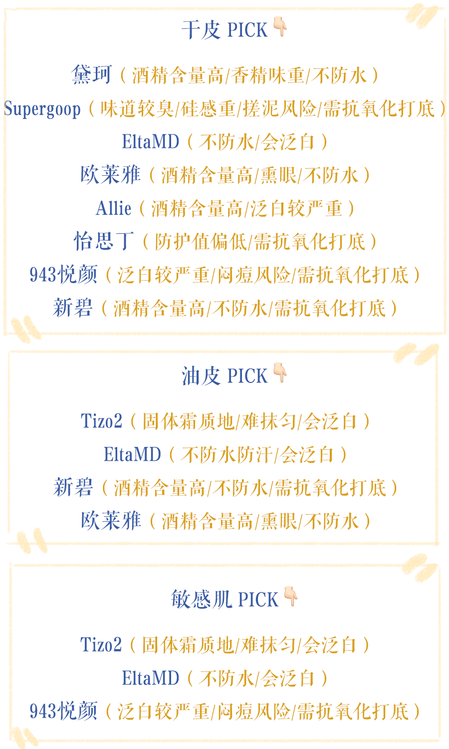 括號(hào)內(nèi)為使用感受里被提到的比較的缺點(diǎn),大家通過(guò)膚質(zhì)大分類(lèi)后可以根據(jù)需求選擇自己想要的~