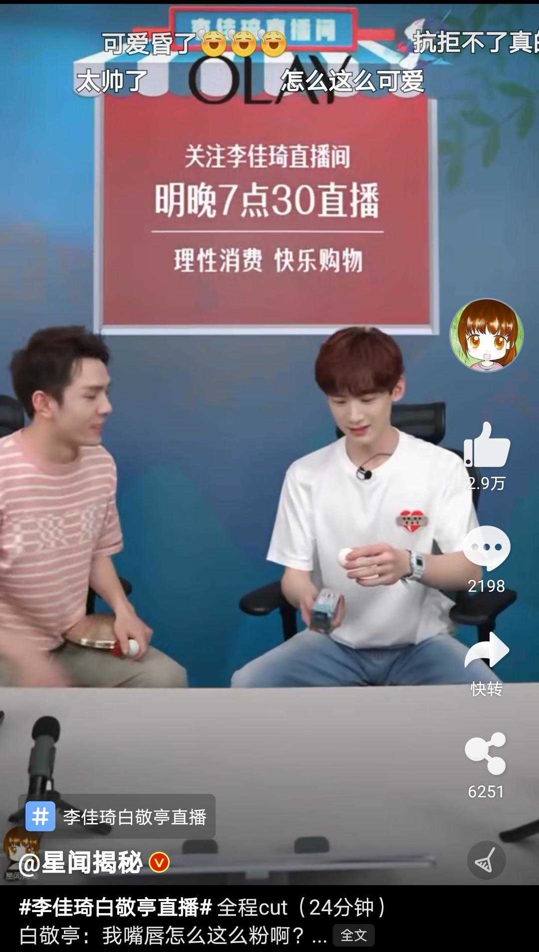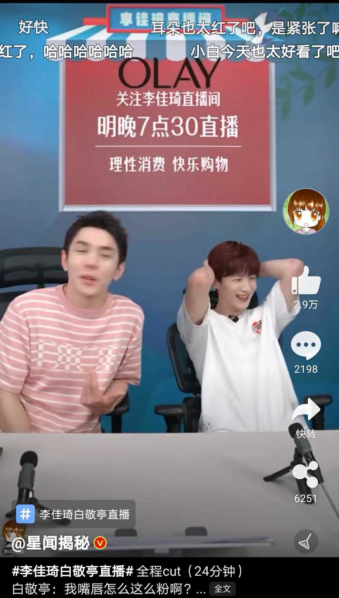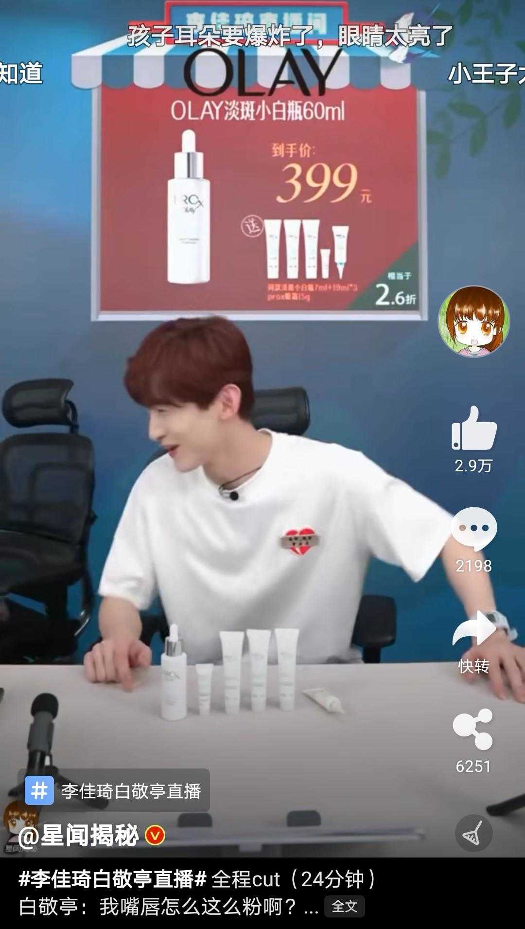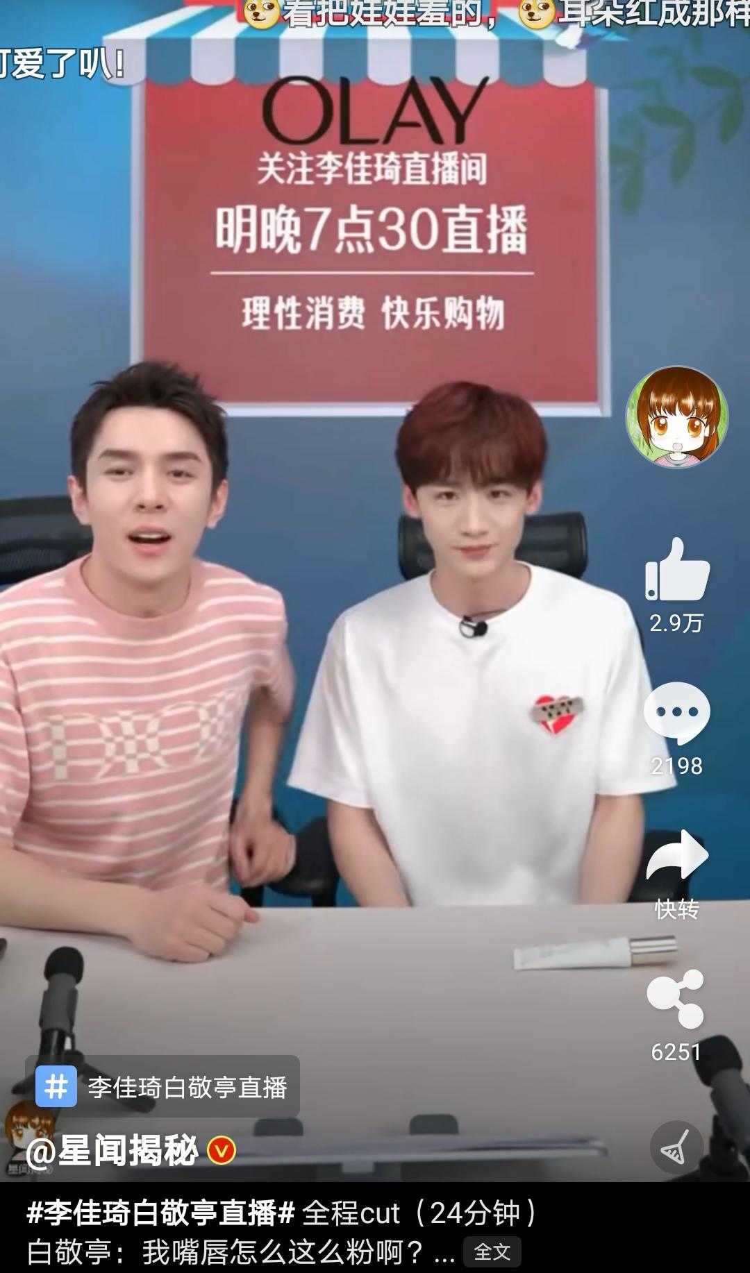 ????準備要走了直接把李佳琦推到旁邊,歡迎來到白敬亭的直播間,哈哈!