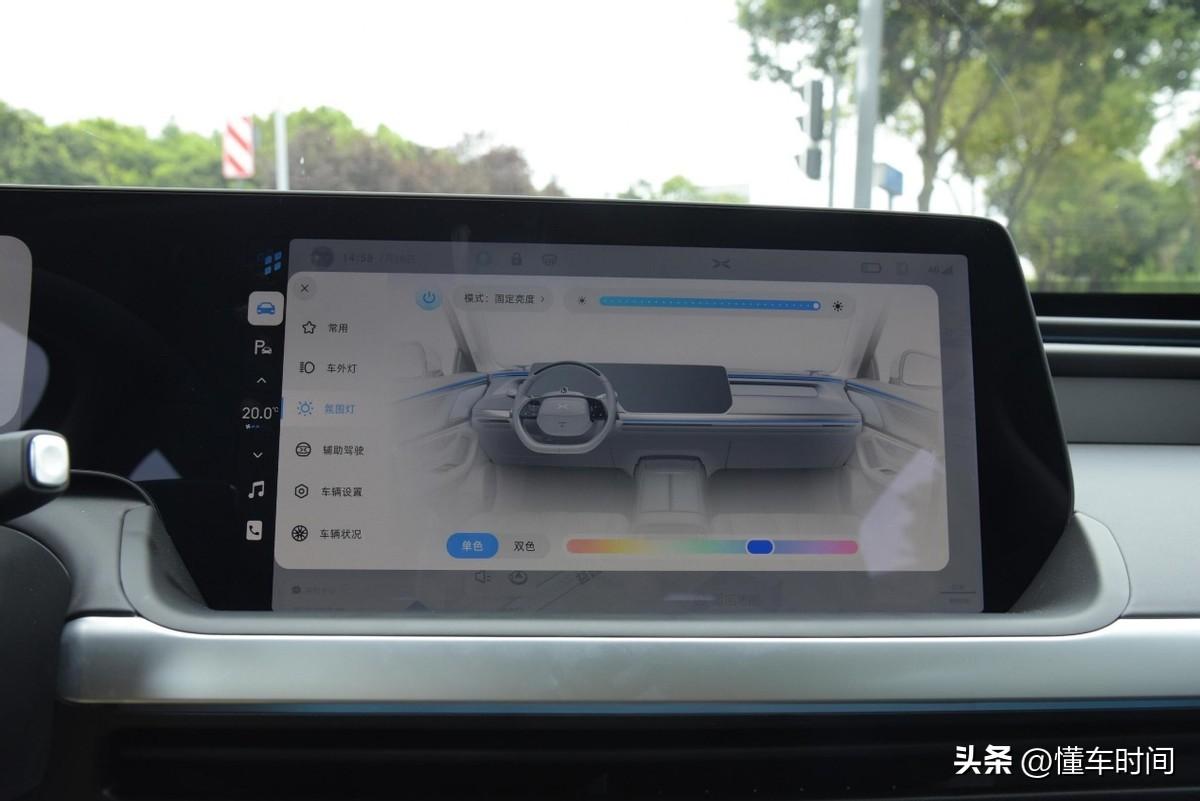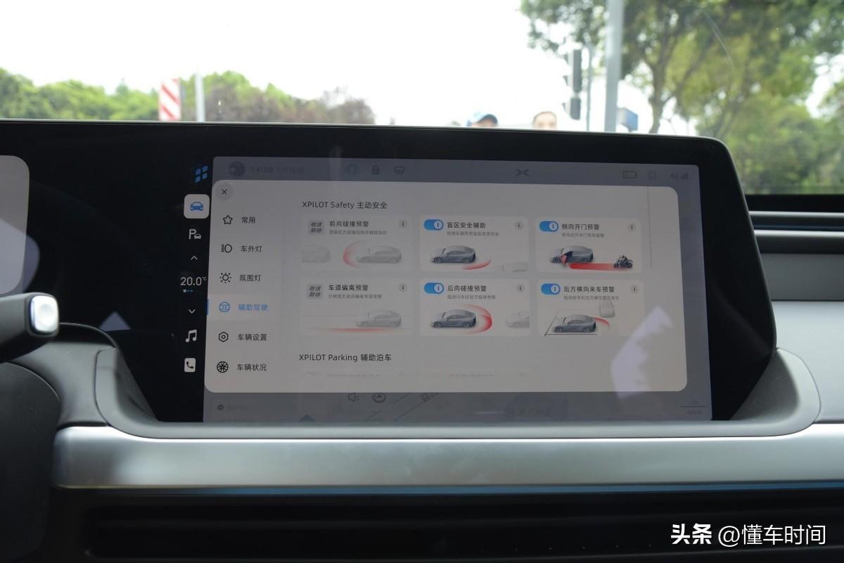 小鵬P7的中控屏幕為14.96英寸,全液晶儀表為10.25英寸,個(gè)人認(rèn)為這樣的尺寸是既能夠提供舒適的觀看和操作體驗(yàn)又不會(huì)過于搶眼導(dǎo)致喧賓奪主的。另外,儀表盤和中控屏的顯示內(nèi)容采用了扁平化的設(shè)計(jì),清晰易懂且很多選項(xiàng)也都做到了可視化,所以即便它功能豐富,但學(xué)習(xí)成本并不高。