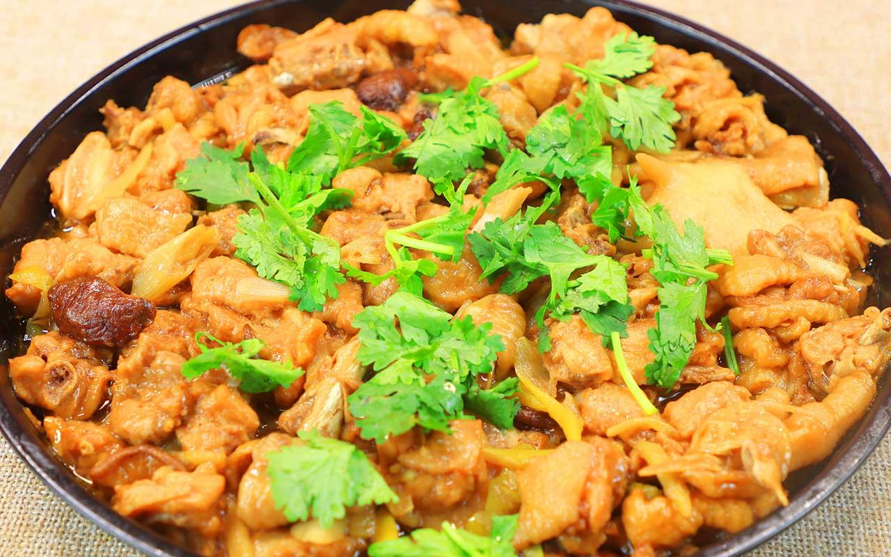 20分鐘以后,把雞塊取出,撒上香菜段美味即成。一道鮮嫩多汁的燜扒雞就做好了。
