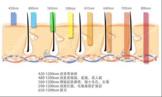 你以為它是激光?NO,NO,NO,它其是寬譜的光波,可覆蓋多種靶色基如黑色素、氧化血紅蛋白、水等的多個(gè)吸收峰,理論基礎(chǔ)是選擇性光熱作用。