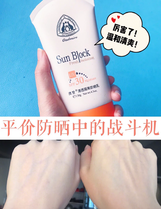 首先這款是澳洲的防曬sun block,這個品牌在國內(nèi)屬于是比較小眾的,所以知道的人還不是很多,但是酒香不怕巷子深,小編今天就把它給大家挖出來!便宜的一款防曬,只要幾十塊錢,差不多一兩頓外賣的價格而已,但是質(zhì)量卻好用。眾所周知,澳洲的日照是充足的,所以他們平時注重防曬工作。這款防曬指數(shù)雖然只有30,但是平時經(jīng)常做辦公室或者上學(xué)的仙女們用是足夠的了,如果經(jīng)常進(jìn)行戶外活動的話,還是買防曬指數(shù)50的比較好哦。使用感很舒服,無添加,上臉之后不會有油膩感,不假白也不搓泥,而且還有一點控油和提亮的果。上圖左手邊是涂過防曬的,看得出來是自然的提亮了,可以說是防曬上妝一步到位啊。