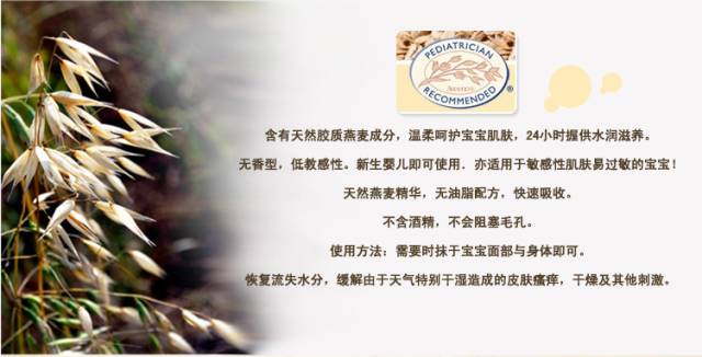 Aveeno產(chǎn)品多使用了燕麥和大豆成份,以、溫和、無刺激為大賣點,主要適合中性偏干、敏感型肌膚和嬰兒使用。是抗敏修護第一名的優(yōu)良品牌。
