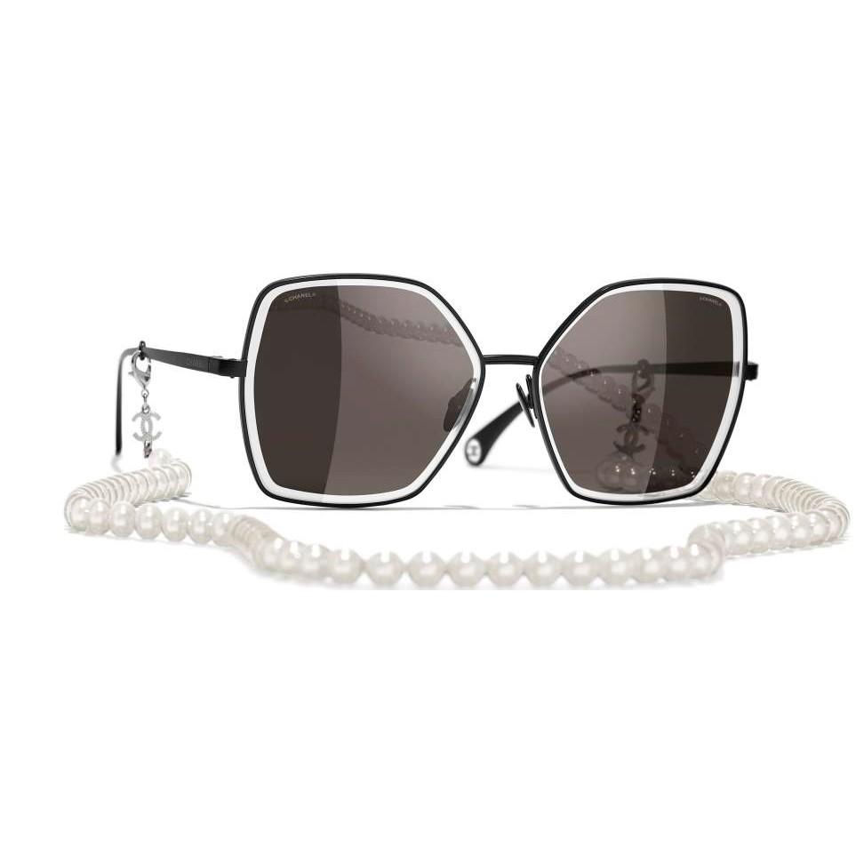 金屬、名貴樹脂與人造珍珠 黑. 鏡片: 灰, 鏡面