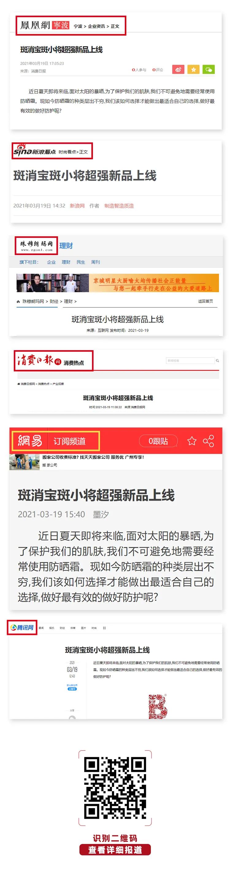 近日,廣州斑消寶旗下的子品牌“斑小將”推出新品“斑小將美白隔離防曬乳”,產品一經亮相就獲得廣泛關注,引得新浪、網易、鳳凰網等多家主流媒體爭相報道。