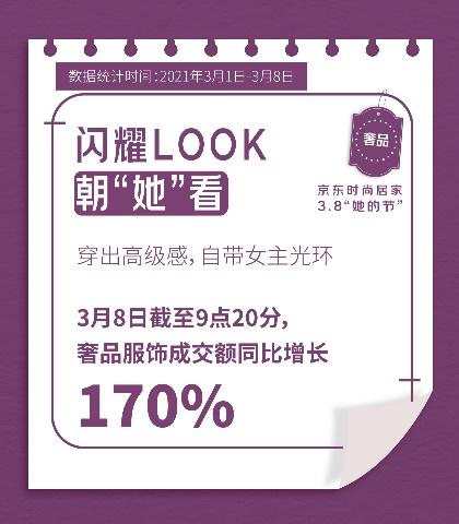 “她的節(jié)”是專屬女性的狂歡節(jié),作為主角的她們從頭到腳展現(xiàn)了自己的時(shí)尚與品味。3月8日截至9點(diǎn)20分,京東腕表成交額同比增長110%,用腕間時(shí)尚裝點(diǎn)女神氣質(zhì);奢品服飾成交額同比增長170%,奢品鞋靴成交額同比增長。同時(shí)菲拉格慕自營旗艦店店鋪成交額同比增長,PINKO自營旗艦店店鋪成交額同比增長270% 。