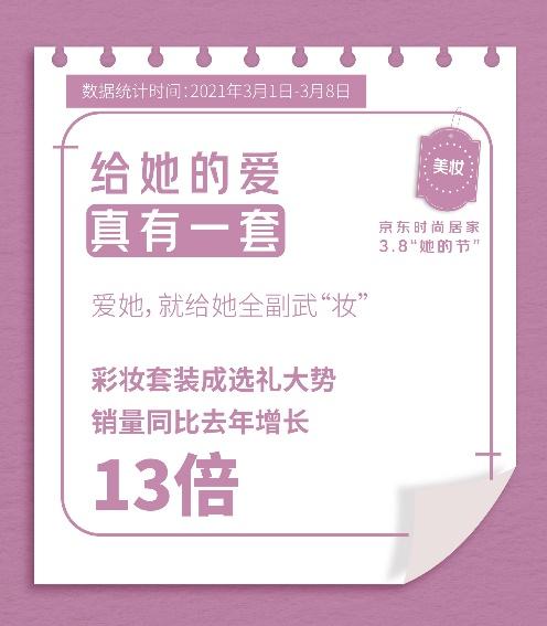 京東大數(shù)據(jù)顯示,3月1日-8日“她的節(jié)”期間,京東時(shí)尚居家彩妝套裝銷量同比去年增長13倍,美膚花灑成交額同比增長5倍,智能晾衣機(jī)整體成交額同比增長360%......時(shí)尚居家好禮無疑為女性的生活增添了更多精致、時(shí)尚氣息,并促使“禮在京東”占據(jù)了更多用戶心智。