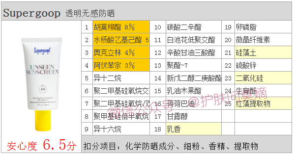 當然,化學(xué)防曬成分加的越多,對皮膚的潛在刺激性也會略增加一點, 因而這款防曬霜的安心度也會略遜于上一款。