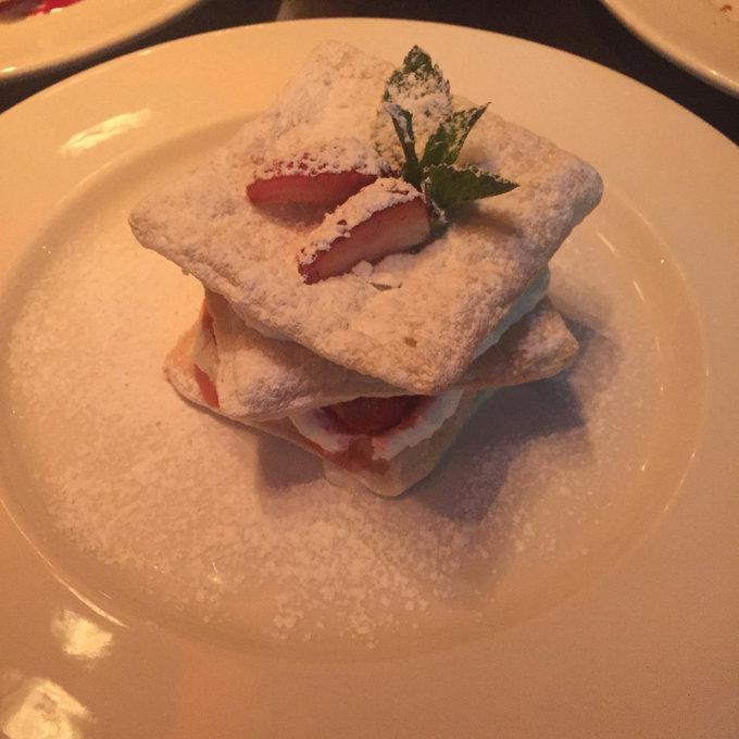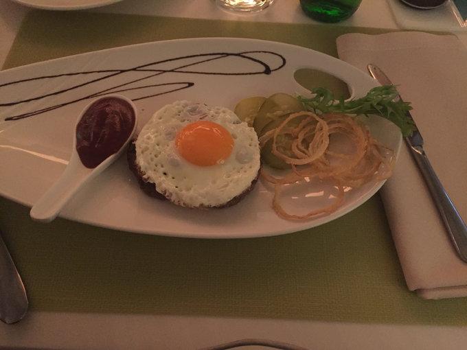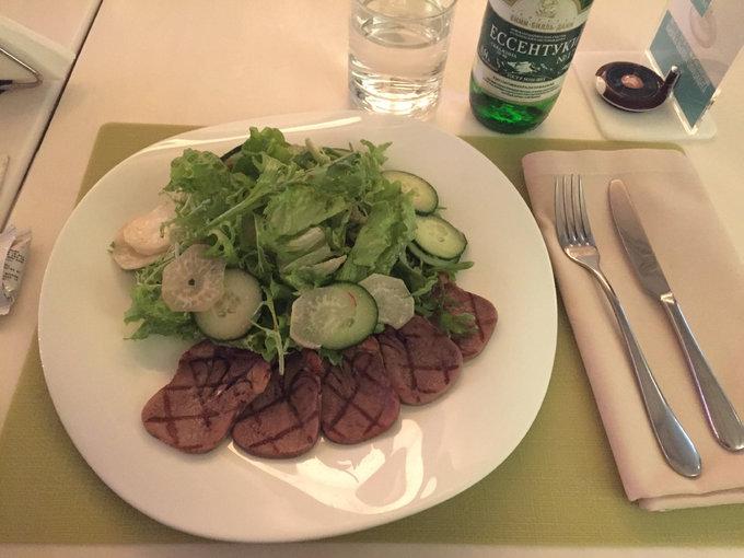 晚餐好吃!餐廳環(huán)境也好呢!我同學(xué)說是上過什么特別有名的旅行雜志,總之!好吃!?。『贸裕?!我們每個(gè)人先點(diǎn)了一份沙拉,一份主菜(牛排),一份甜點(diǎn),還有一個(gè)飲料,我愛的還是俄羅斯的沙拉,怎么這么好吃!和網(wǎng)上健身減肥餐很像,可是,太好吃了,如果我也能做的這么好吃,天天讓我這么吃我也樂意呢。