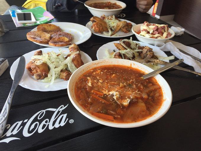 中午在海灘邊二毛子開的餐廳吃了午飯,味道只能說一般,這個(gè)紅色的湯就是俄羅斯有名的紅湯,沒有昨天吃的好吃呢