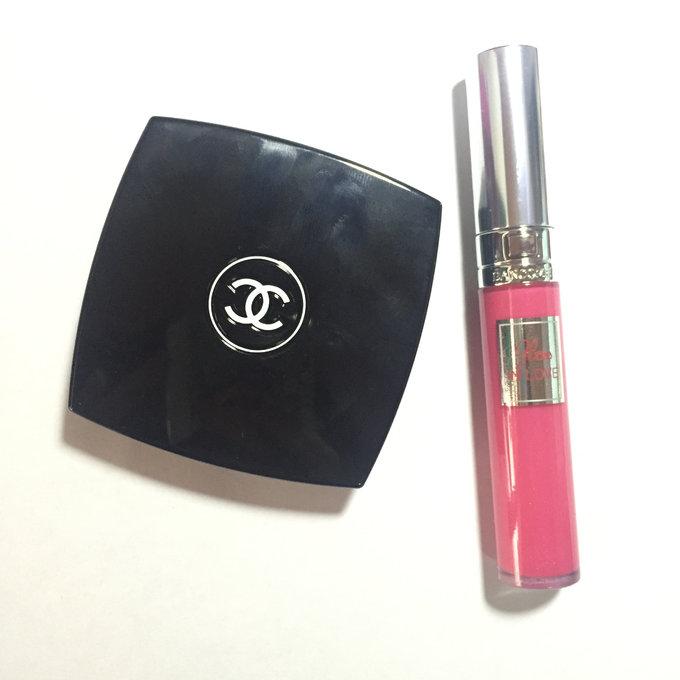 我買了一個(gè)Chanel的粉餅+Lanc?me的唇釉一共200