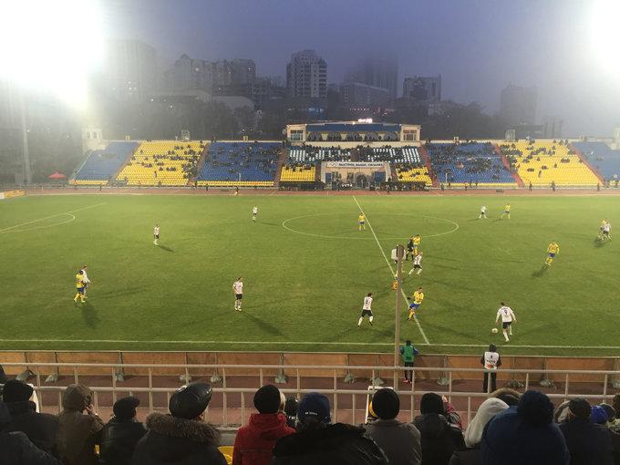 看球賽其實(shí)是歪打正著的,前一天在海參崴工作的朋友還和我們說在步行街邊上的球場(chǎng)里會(huì)有球賽,可以來感受一下,結(jié)果晚上我們散步的時(shí)候就發(fā)現(xiàn)了居然在買票,正是今晚,買票的好多都是老頭老大爺們,在海參崴這幾天盡是看美女帥哥了,第一次見到這么多老爺爺居然是在買球賽門票這里,票價(jià)也挺便宜的,我們?nèi)齻€(gè)買了10塊錢一張的。