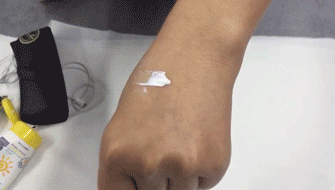 這款是物理+化學(xué),雙重防曬,SPF50+,有阻擋紫外線。它就像是“用水做的”。乳白色的質(zhì)地水水的,只比化妝水粘稠一點,還能看到小水珠。