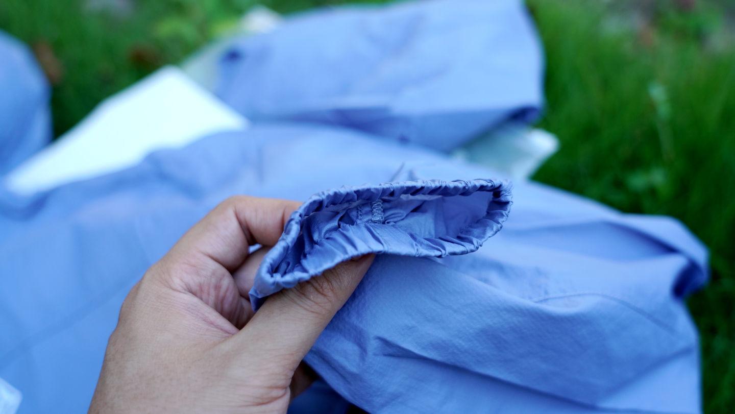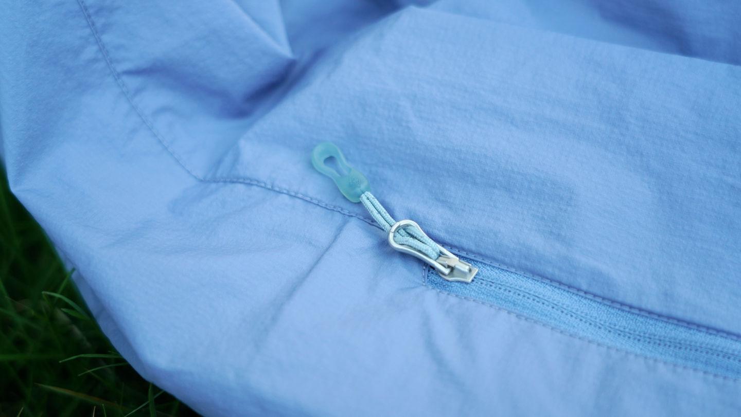 具有彈性,可通過抽繩調(diào)節(jié)的下擺好用,在不同的光線下,這款防曬衣的湖藍(lán)色有時(shí)候還會(huì)呈現(xiàn)出一點(diǎn)點(diǎn)偏紫色,也挺好看。