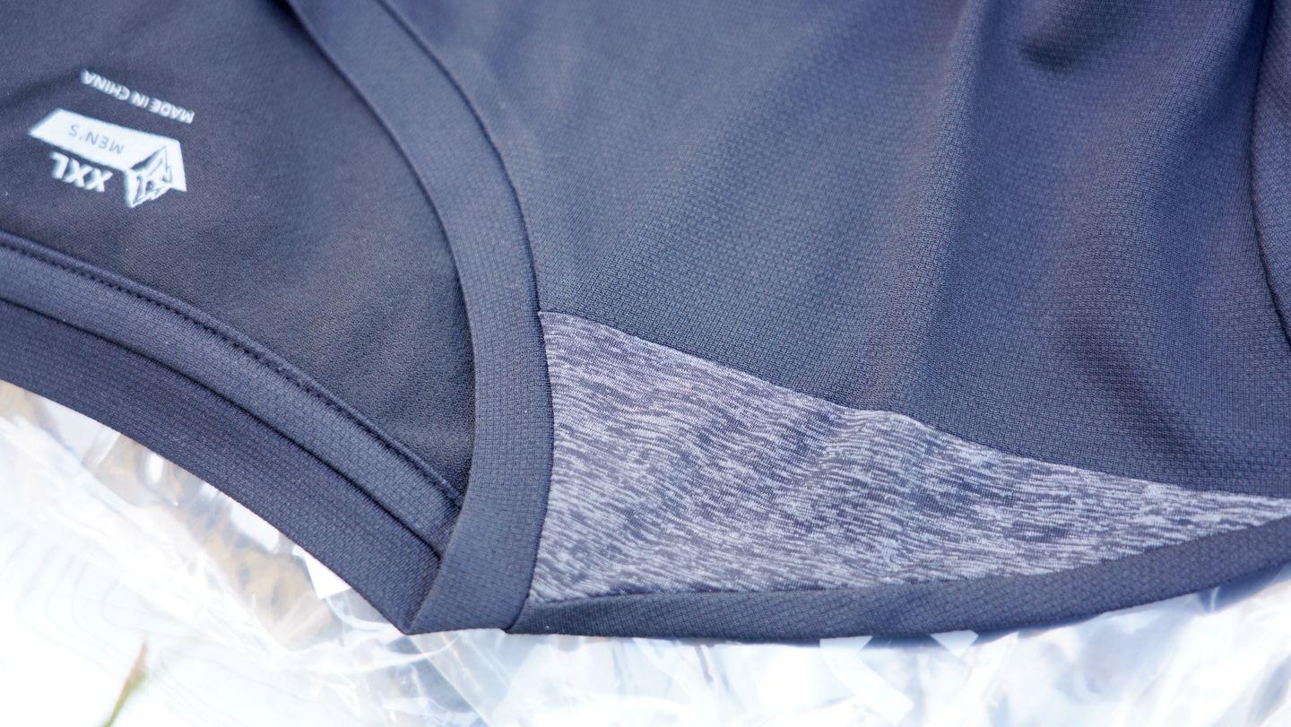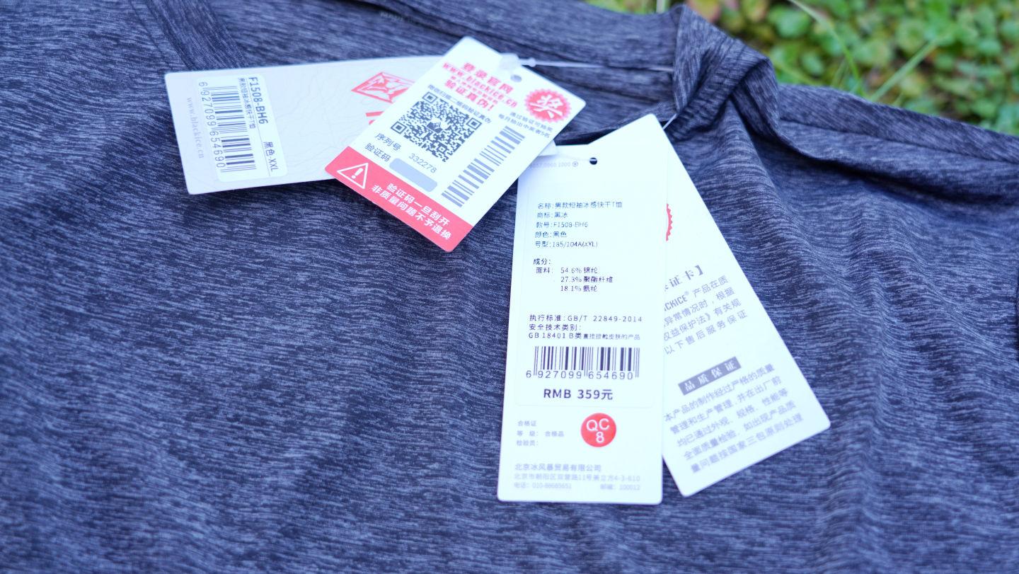 和第一件T一樣,顏色,標(biāo)牌,LOGO都是幾乎一樣。由于并不是采用的聚酯纖維材料,而是用了錦綸+氨綸+聚酯纖維的材料組成,讓這款T的帶來了更冰涼的觸感,重量上比剛才的T重了17g,這也是輕薄到幾乎可以忽略不計(jì)的差異。