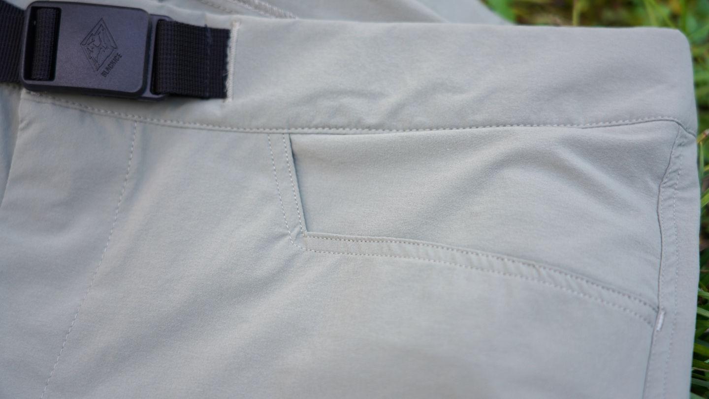 接著聊聊短褲,這是一條登山或者休閑都可以穿著的褲子,采用了東麗的防潑透氣面料,和T恤一樣,具有透氣快干功能。