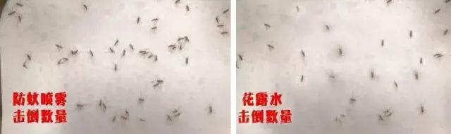 實(shí)驗(yàn)很快有了結(jié)果,防蚊噴霧瞬間擊倒蚊子的數(shù)量遠(yuǎn)遠(yuǎn)高于花露水擊倒的數(shù)量。