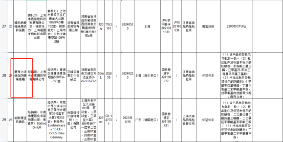 采潔防曬霜標(biāo)簽標(biāo)示與批件一致。但未檢出批件及標(biāo)簽標(biāo)示的防曬劑:4-甲基芐亞基樟腦、丁基甲氧基二苯甲酰基甲烷、奧克立林、甲氧基肉桂酸乙基己酯。標(biāo)示委托方“上海金泊萊雅化妝品有限公司”確認(rèn)生產(chǎn),標(biāo)示受托方“廣州市采潔化妝品有限公司”否認(rèn)生產(chǎn)。